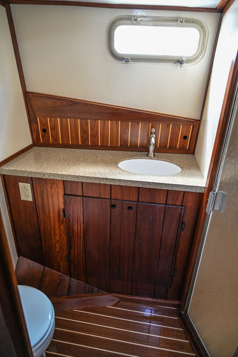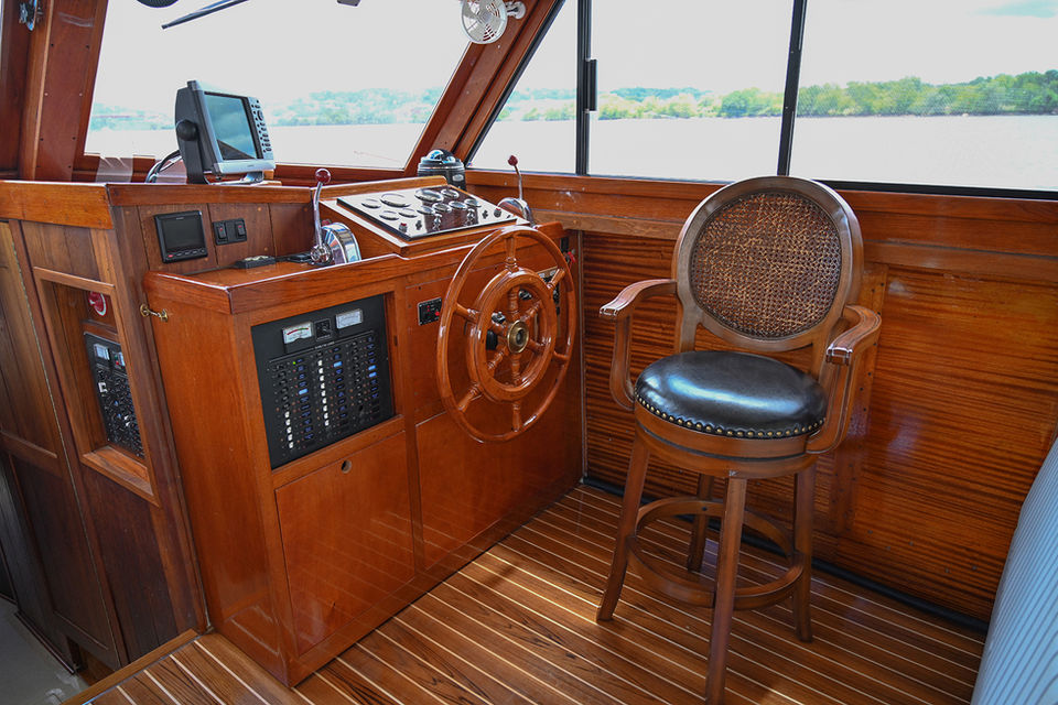 “Independence” is a particularly elegant version of the classic Bruno & Stillman 42’ downeast motor yacht. Designed by renowned naval architect Royal Lowell, the Bruno & Stillman 42’ is considered one of the finest examples of the downeast style and can be seen in harbors throughout New England on both working fishing vessels and pleasure craft. Bruno & Stillman produced over 400 comparable boats in the early 1970s and was the leading provider of this type of boat, the authentic predecessor to the modern versions we see from Hinckley and Sabre. Independence was launched in 1976, the bicentennial anniversary of American independence, and features extensive brightwork of varnished mahogany and an extended refinished salon for a luxury cruising experience.